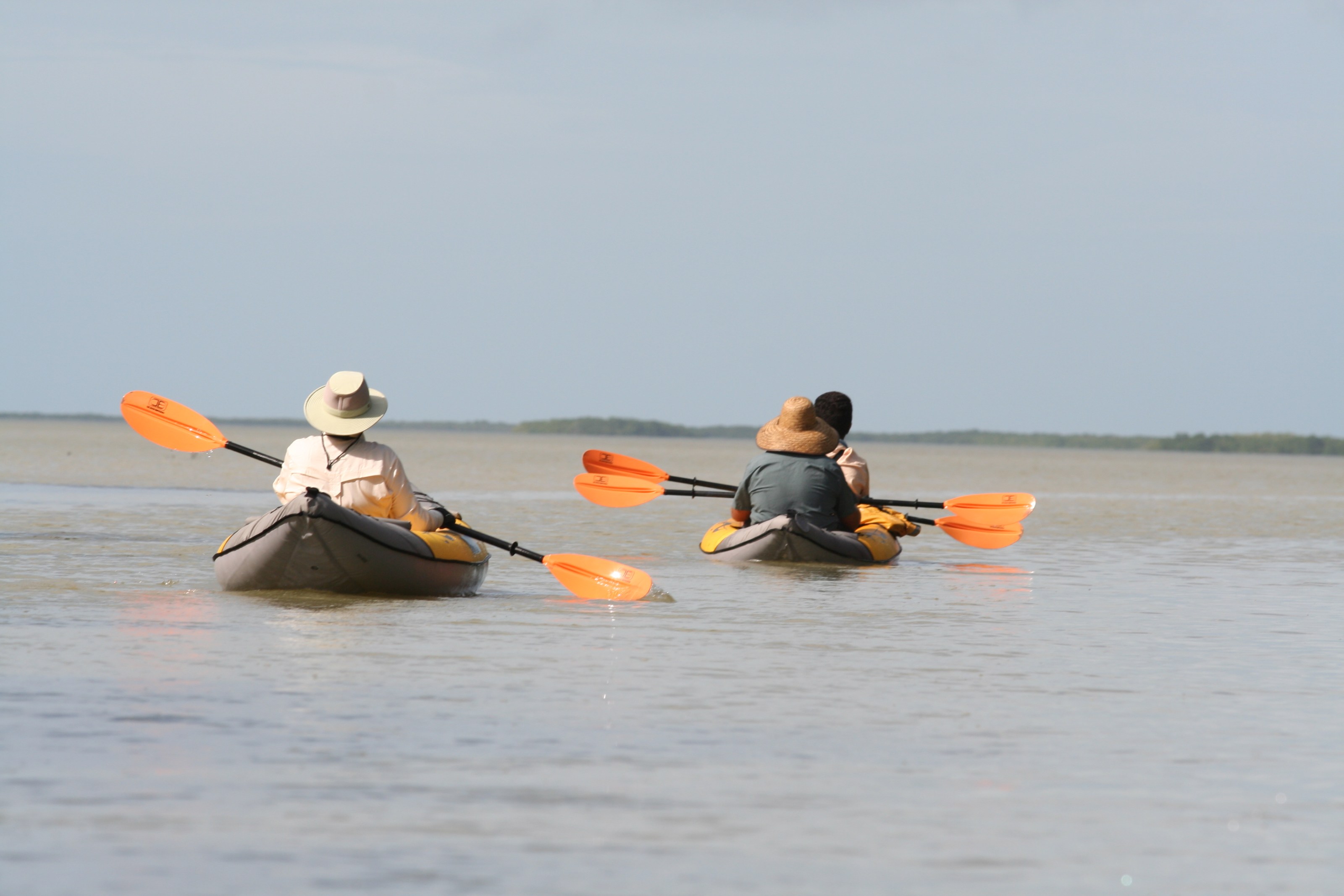 To closely explore the mangrove forests, we supply double kayaks and paddles.